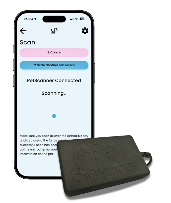 Simply pair a PetScanner with our free app on your smartphone to get scanning. Upon scanning a pet, the app will display the microchip number as well as other information depending on these 3 possible scenarios: